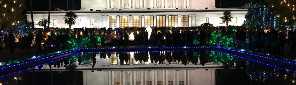 I’m spending a few days at a friend’s house in the Phoenix area and she suggested that we go see the Christmas lights around the Mormon Temple in Mesa, AZ. I’d never been to the Mormon Temple — in fact, I didn’t even know there was a Mormon Temple in Mesa. I’m always game to try something new, so we went.