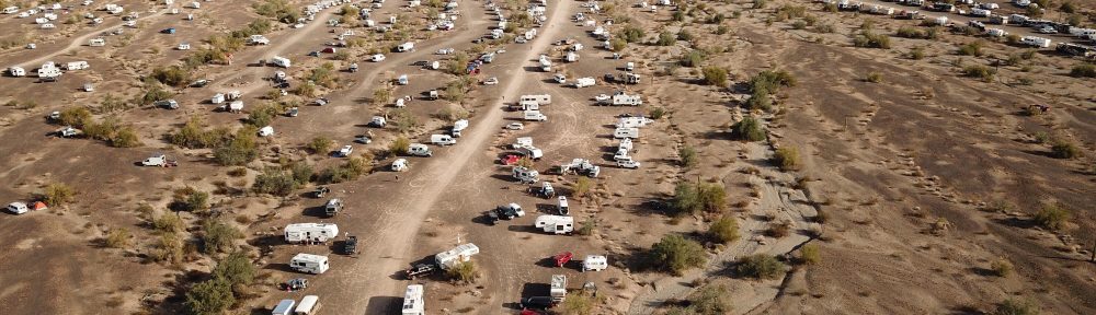 I’m still in Quartzsite — I’ll be here for two more weeks — and I kept hearing about something called RTR. I knew that it was a gathering of RVers out in the desert east of Quartzsite, and I had heard from one participant that there were 3,000 RVs parked out there. Yesterday afternoon, I decided to take my drone out there for a look.