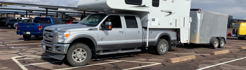 In the meantime, I’d asked security if I could leave my camper parked overnight in the lot. They said I could, as long as I didn’t sleep in it. No problem. On Friday, I dropped the camper’s legs and moved the truck out, then lowered the camper nearly as low as it would go. I didn’t bother with the sawhorses since I wouldn’t be spending much time in it. So on Friday evening, when I returned to my friend’s place in Gilbert, the truck was camperless.