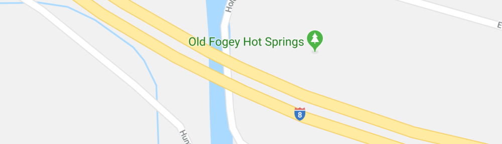 One of my favorite snowbirding destinations is a hot springs right off I-8 near Holtville, CA. On BLM land and maintained by the government, it’s a pair of concrete tubs beside a palm-lined pond that are all fed from a tapped natural hot spring. Although I’ve always known this place as Holtville Hot Spring, some nasty asshole has apparently renamed it on Google Maps as “Old Fogey Hot Springs,” apparently referencing the fact that most people at the spring are retirees camped out in the long term camping area across the street.