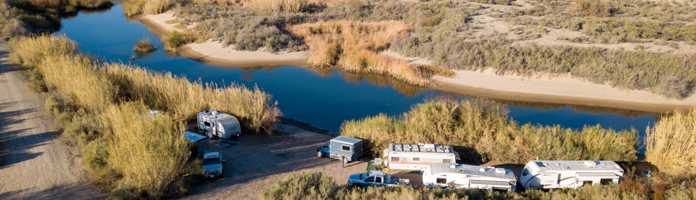 This campsite is completely off-the-grid. There are no hookups or other facilities so you have to bring in everything you need: power, water, propane, and toilet. My rig has 2 12-volt RV batteries and a total of 360 watts of solar power to keep them charged. It holds 30 gallons of fresh water, but I also have 2 7-gallon jugs to fetch more. I have 2 5-gallon propane tanks that provide heat and hot water and keep my refrigerator running. Over the years, I’ve learned how to minimize toilet usage so the 30-gallon waste tank lasts two weeks without stinking. We do have cell phone service, but it’s weak — usually 1 or 2 out of 4 bars on my phone. If I hold my phone just right, I can get on the Internet.