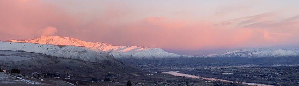Here’s the view out my kitchen window this morning as I was writing this. We had fresh snow at higher elevations (including my home) overnight.