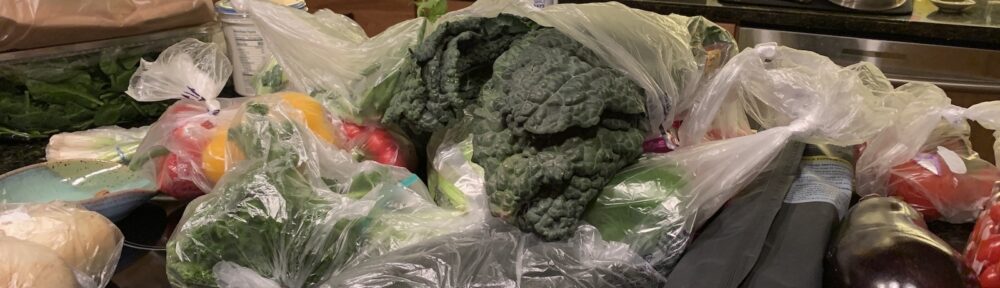 After reading up on the “good food” vs “bad food,” I paged ahead to the first week’s shopping list and dutifully added all the items I didn’t already have on hand to the shopping list in my phone. Although I’d planned on going food shopping this morning (Sunday), it was a good thing I had the list with me on Friday when I happened to be in town after a trip with a friend up to Twisp; I put on my mask and braved the Fred Meyer supermarket in mid afternoon to get what I needed. I don’t think I’ve ever spent so much time in the produce department in my life. I wound up with a ton of veggies, many of which — like kale and fennel (anise) — are not normally part of my diet. I had trouble stuffing them all into my fridge.