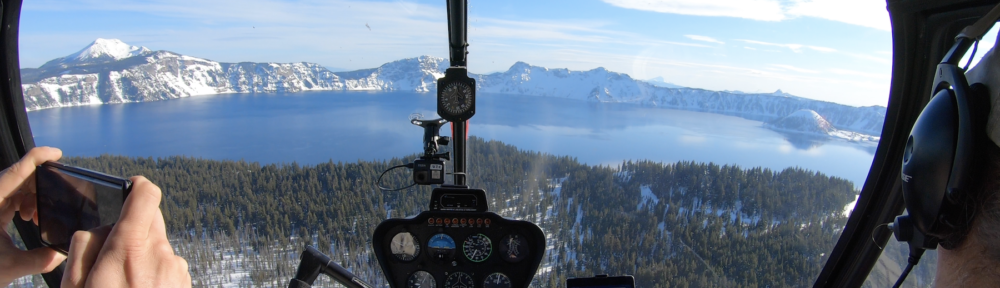 I flew over Crater Lake while Skyler played tourist. I erroneously thought that my helicopter’s nose cam would pick up footage from our flight, but the damn thing had stopped writing to the video card 15 minutes after leaving McMinnville.