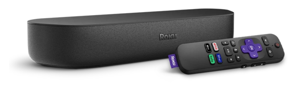 The Roku Streambar and its remote. It’s actually pretty small and doesn’t sound nearly as good as my Samsung sound bar on my new TV, but it’s good enough for me.