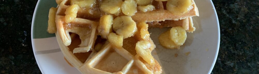 My breakfast this morning. The waffle recipe I found was very plain/boring and it needed something to spice it up. I had the ingredients for this so I made it.