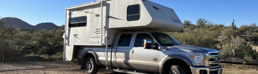 I’m in Tucson now, in the Ringtail dry camping lot of Catalina State Park. I love this park, which is nestled into a little canyon where I can easily fool myself into thinking that the nearest Walmart isn’t less than 2 miles from my camper door. I’m not terribly fond of the campground, though, since the sites are tiny slots and, for some reason, my picnic table and fire ring seem to be located more conveniently for the slot next door. I will admit that it’s a lot nicer than the gravel parking lot I stayed 5 nights in in Quartzsite last week. At least there’s desert out my back yard — instead of a yahoo with a toy hauler and dogs that won’t quit barking.