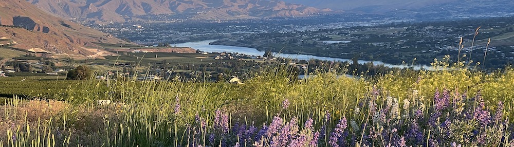 I shot this photo this morning when I took my pups out for their morning pee. The sun’s first light was just touching the tops of the lupine and illuminating the hillsides down in Wenatchee.