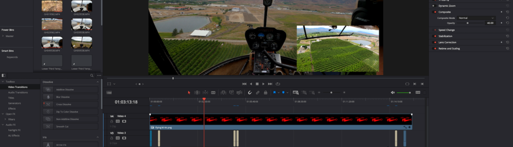 But before I can get those tracks into my video editing software, I have to get it off the cameras. I copy them from their micro SD cards directly to a hard disk where I store and archive video for the year. Each year’s hard disk is synchronized to a backup disk every time the master disk is modified. For a four-camera setup covering 30 to 60 minutes of flight time, that takes at least an hour. That’s when I start writing blog posts like this or doing other computer tasks. It’s pretty dull to just sit and watch progress dialogs.