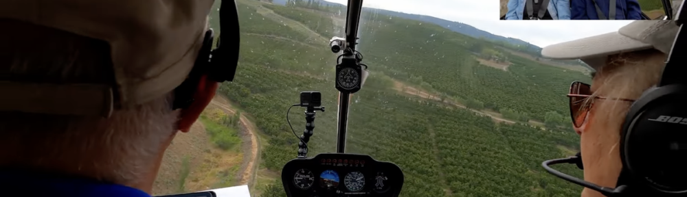 This is a video of a typical orientation flight that I do with cherry drying pilots who come to work with me every summer. The main purpose of the flight is to show the pilot (Rick, in this case) where the orchards are and the kind of obstacles to look out for. He’s got my iPad with the outlines of the orchards in ForeFlight, as well as a book of maps. As I’m flying in this video, I’m pretty much focused on my task at hand, so there isn’t narration — just our cockpit chatter, which is mostly all business.