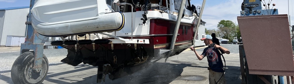 The idea was to bring the boat to a yard where they could haul it out of the water, power wash the bottom, and evaluate it for painting. In general, a boat’s bottom needs to be painted every two or so years; the previous owner did it in April 2022 and it has spent 3/4 of the time since then in the water. I like the boat to be pulled at least once a year to check for damage to the hull, prop, rudder, trim tabs, and anything else under the waterline. I’m not expecting to find any damage, but who knows?