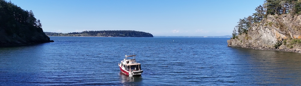 I wound up in Inati Bay on Lummi Island. The anchorage was empty for the first time I’d ever come there. I think more folks were at the new Smuggler’s Cove mooring field farther up the coast of Lummi. Fine with me.